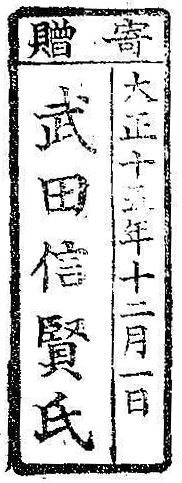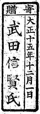 寄贈/大正十五年十二月一日 武田信賢氏