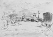 Illustration of a Steam Locomotive Passing Shiodome in Tokyo (Tōkyō Shiodome testudō jōkisha tsūkō zu)