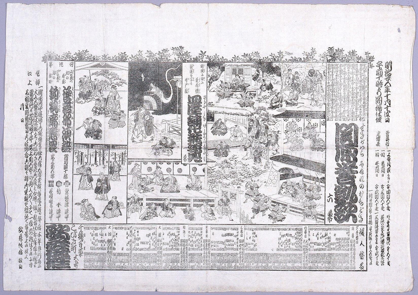 歌舞伎座辻番付 関原誉凱歌六幕 皿屋舗化粧姿見一幕 襖落那須語 釣狐廓懸罠