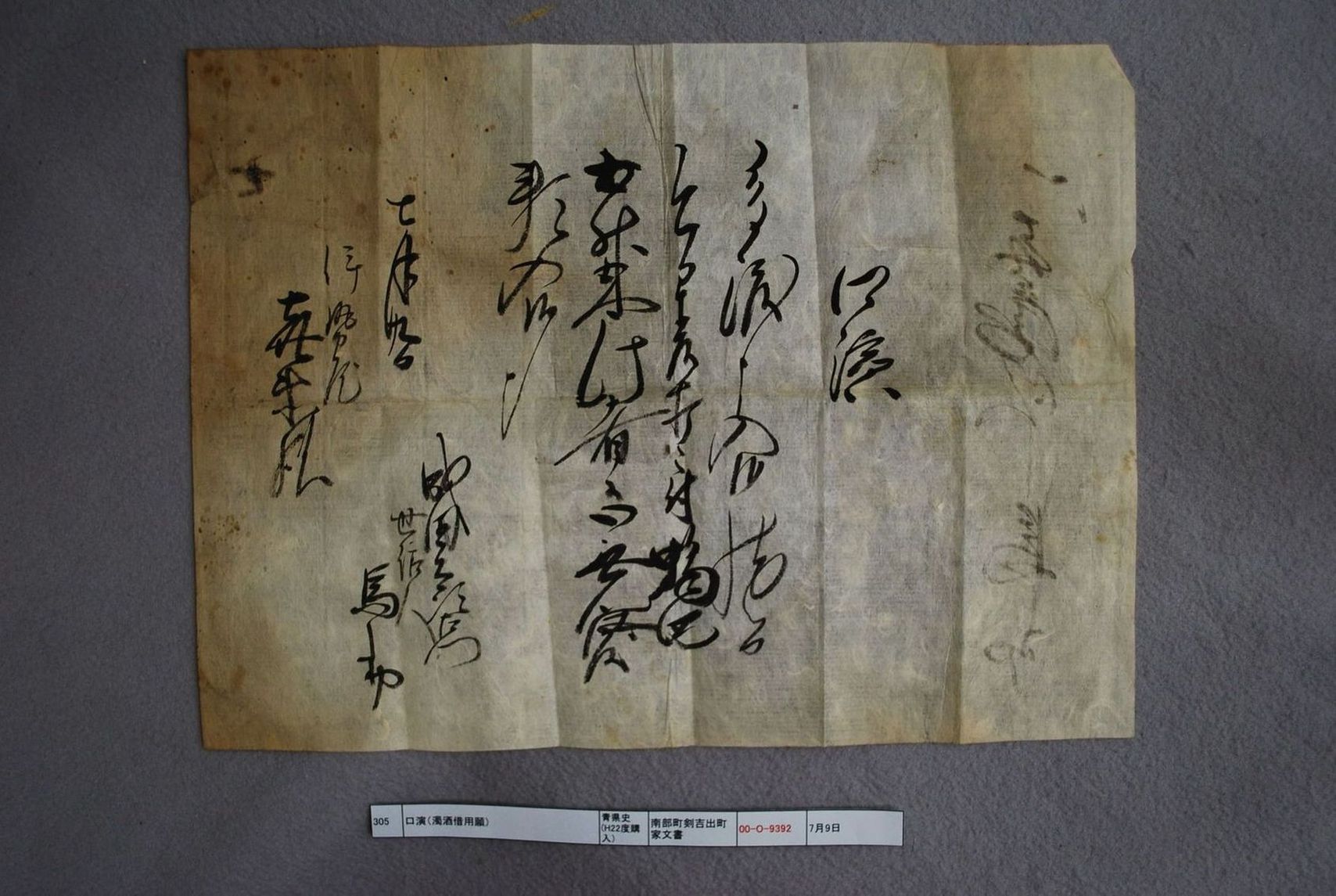 書状(濁酒祝金の件など)