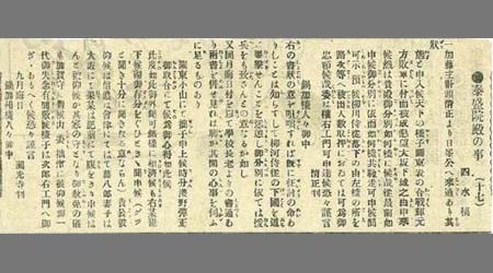 新聞切抜(紙名不明) 泰盛院殿の事 1枚