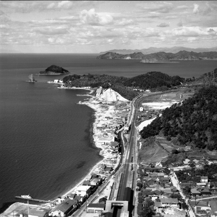 浅虫の海岸線と浅虫駅