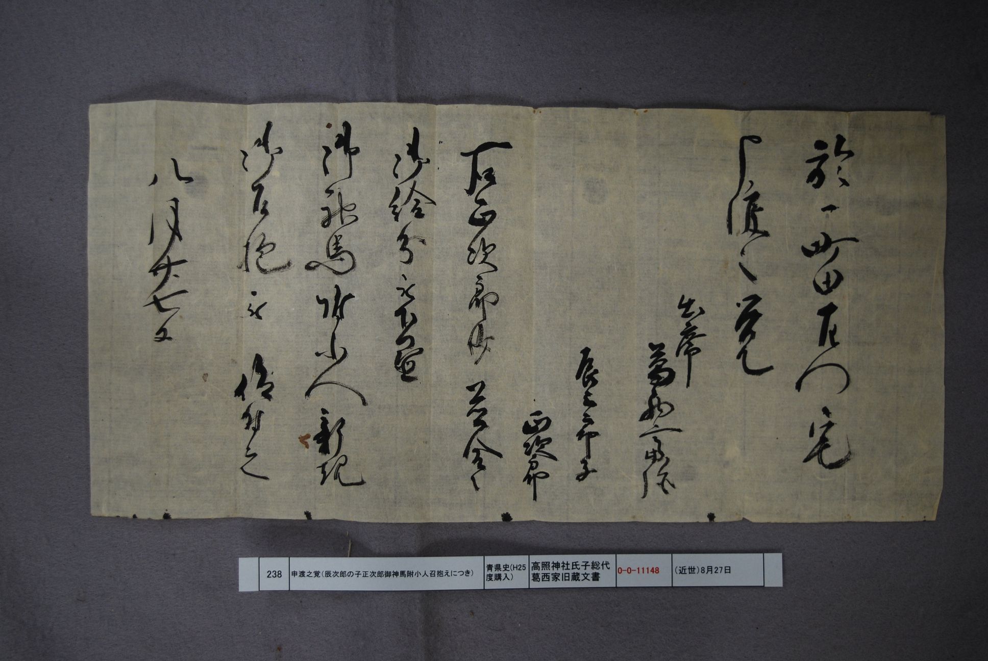 申渡之覚(辰次郎の子正次郎御神馬附小人召抱えにつき)