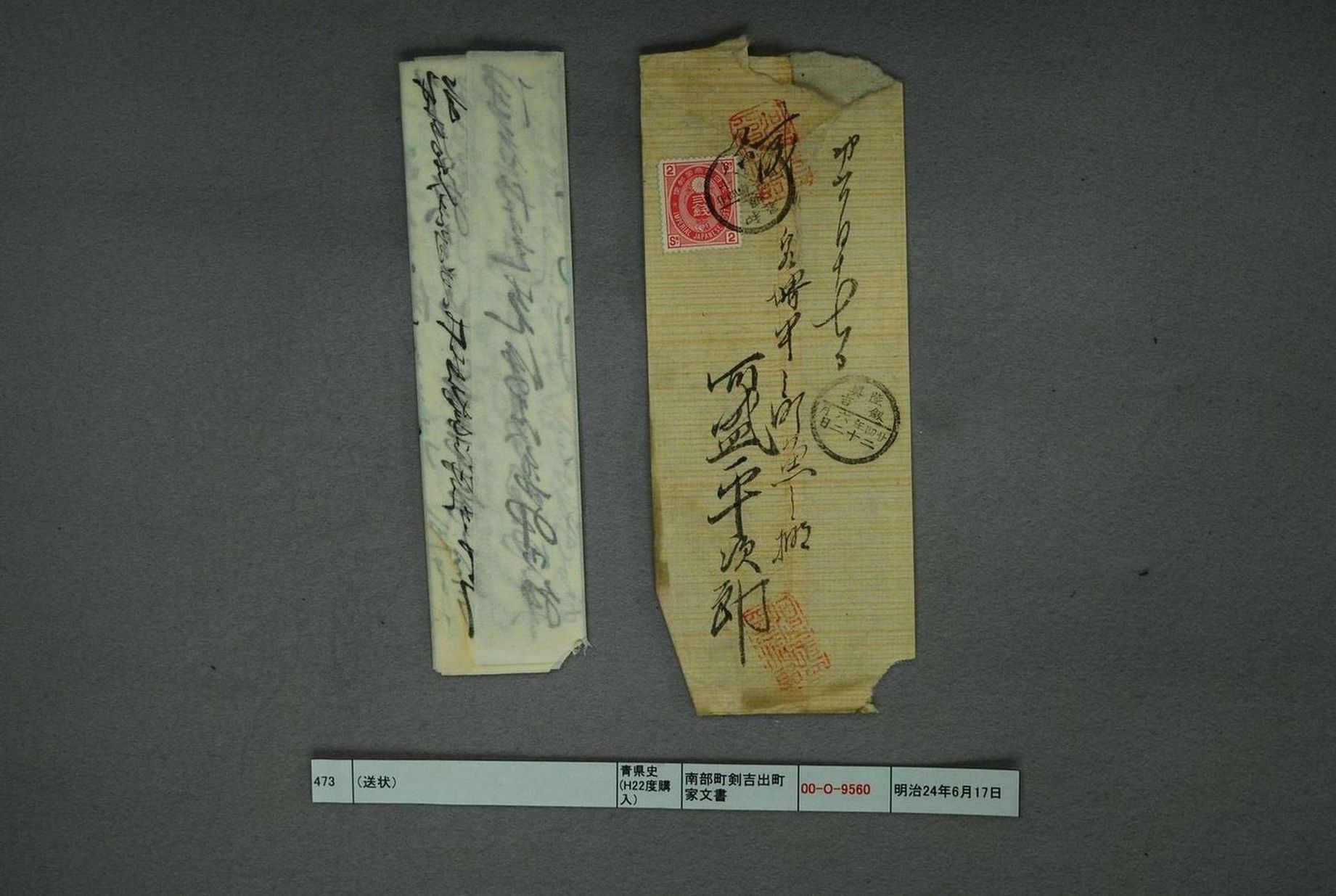 (包物2ツ、書状1通送り状)