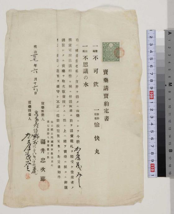 賣薬請賣約定書(不可飲・愉快丸・不思議の水)