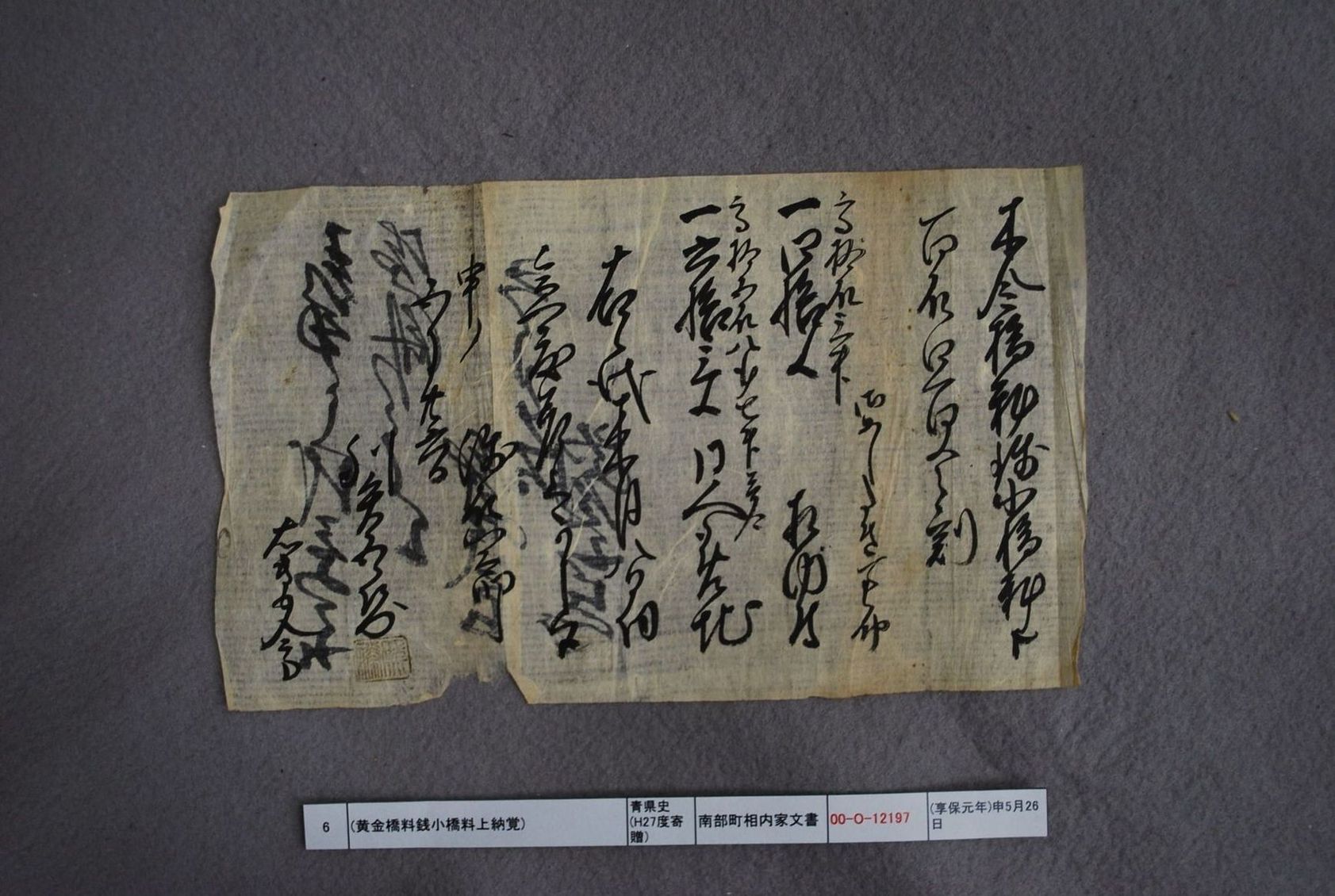 (黄金橋料銭小橋料上納覚)