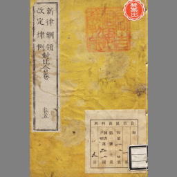 新律綱領 改定律例 對比合巻 巻五 詐偽律 計九條 犯姦律 計五條 雑犯律 計一十條 捕亡律 計六條断獄律 計一十一條
