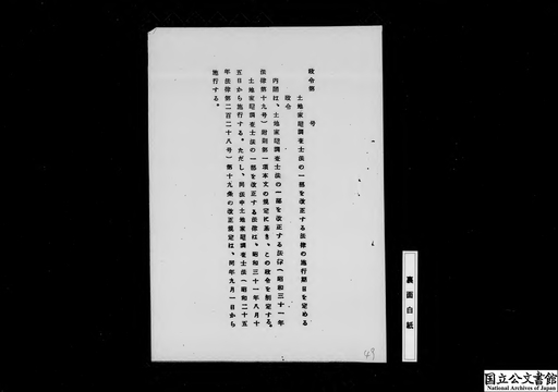 外国人土地法 : 施行令の全文