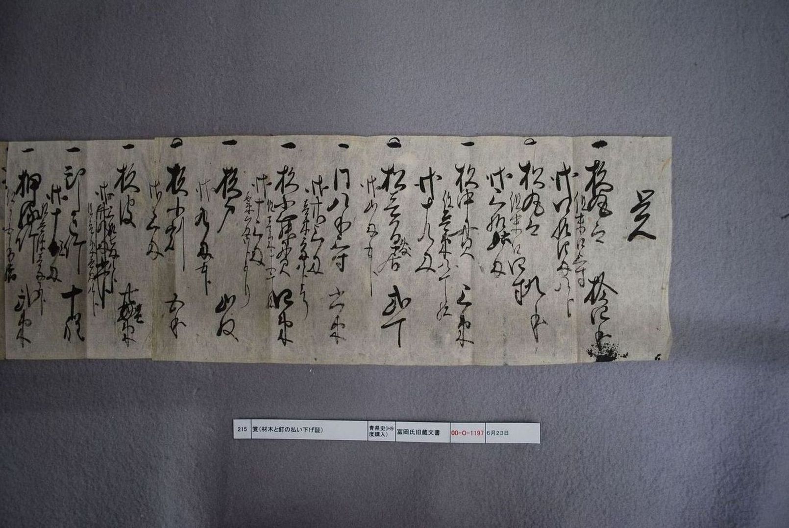 覚(材木と釘の払い下げ証)