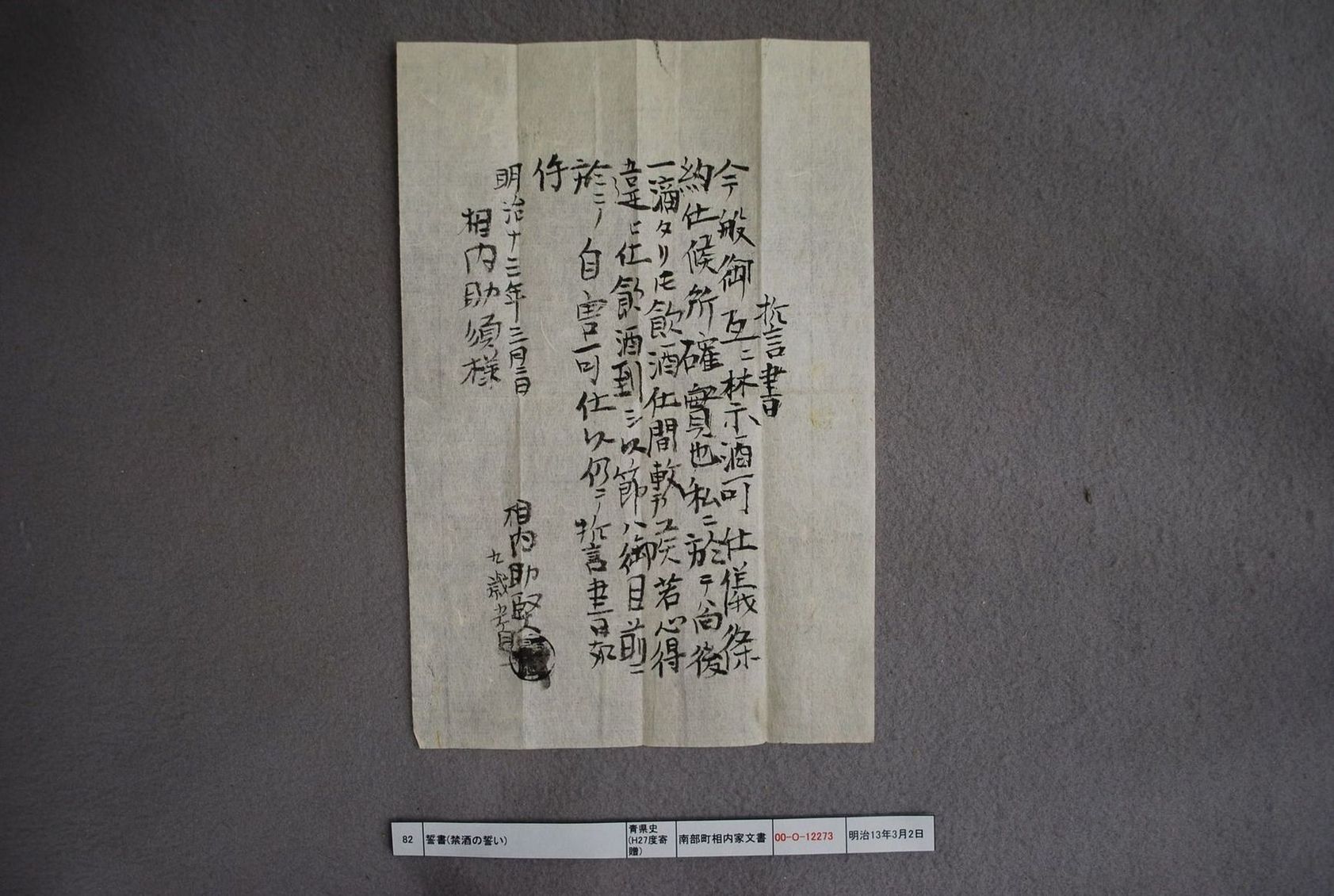 誓書(禁酒の誓い)