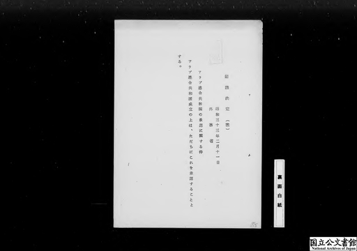 アラブ連合共和国の承認について(外務省)