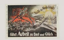 世界大戦ポスター 攘滅の土地の夜から労働が麹包を与へ幸福を齎らす
