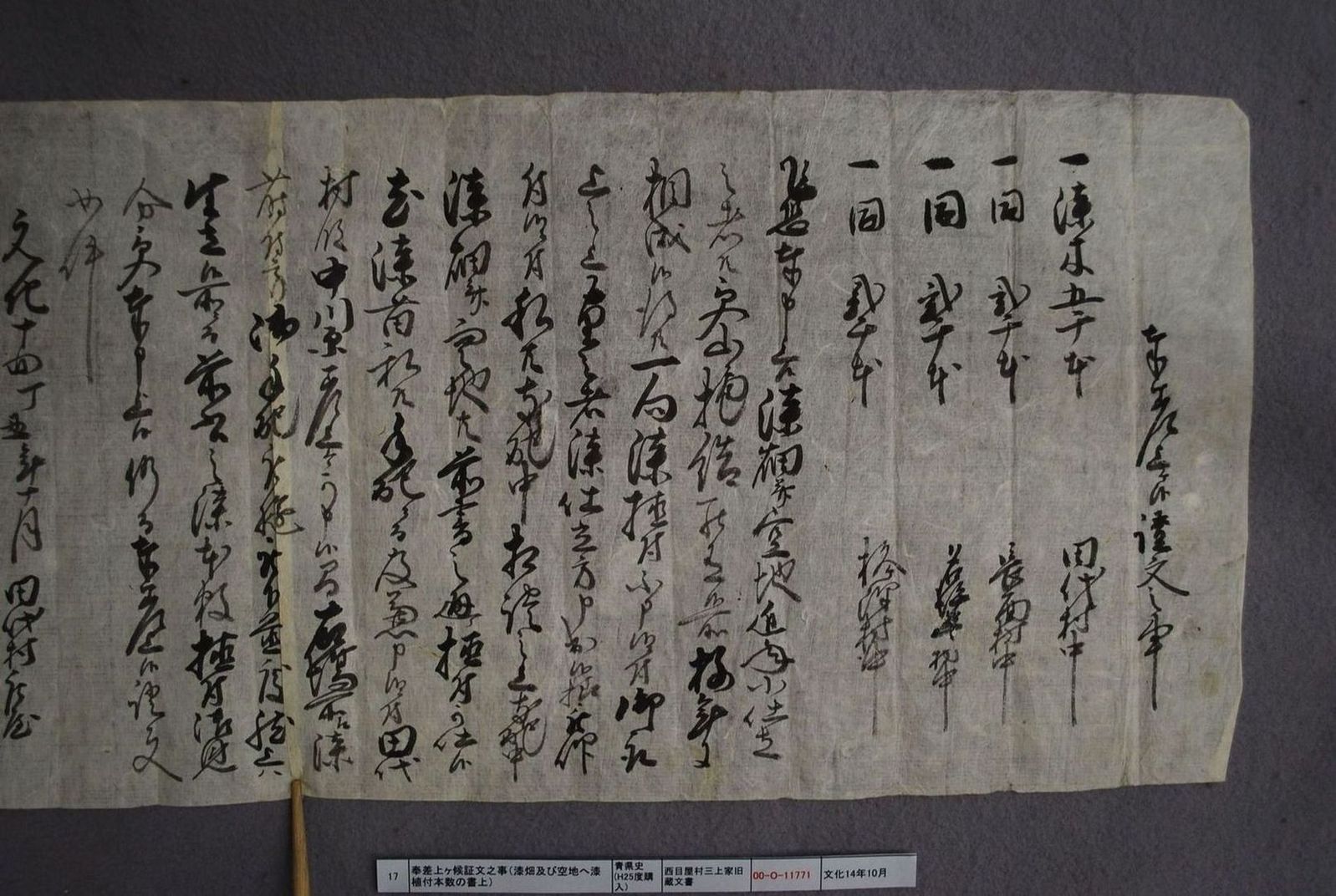 奉差上ヶ候証文之事(漆畑及び空地へ漆植付本数の書上)