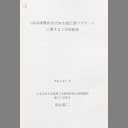GM冷凍機直冷式NbTi超伝導マグネットに関する工学的研究