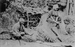 明治初期の小麦の脱穀調整(せんばこき)