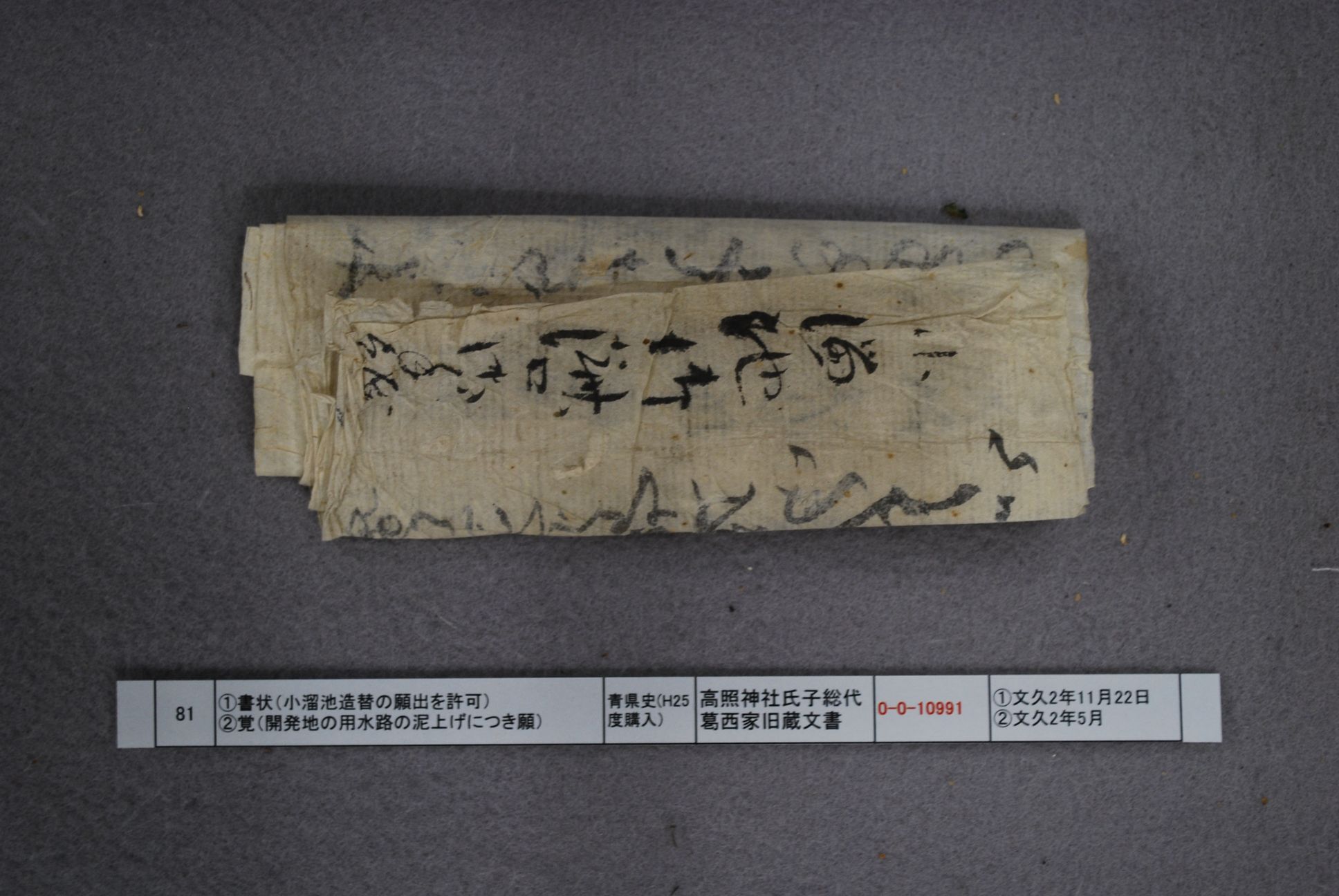 ①1書状(小溜池造替の願出を許可) ②覚(開発地の用水路の泥上げにつき願)