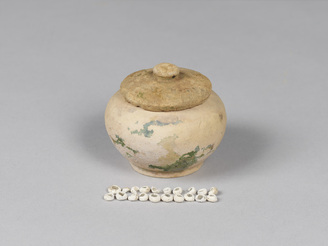 三彩小壺(筑前早良郡出土) 附 ガラス小玉 二十点(破片含む)