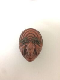 Netsuke in shape of three Noh masks of Hyottocko, Uzume and Rakan