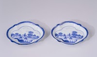 Saucer with figures on a bridge in a water landscape with trees and houses