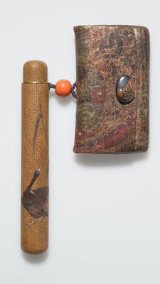 Pipe case depicting geese amid reeds with tobacco pouch