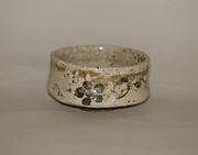 Tea bowl with a black glaze and geometrical patterns in panels