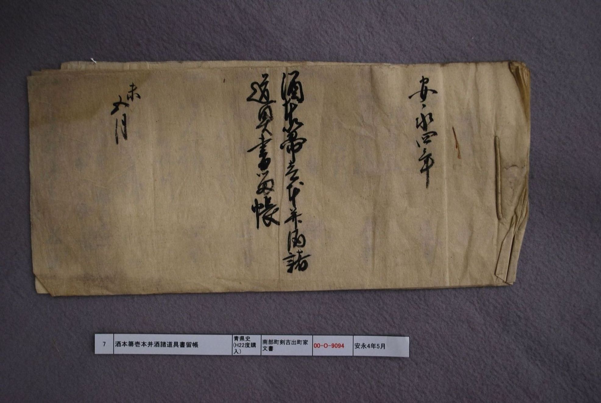 酒本箒壱本并酒諸道具書留帳