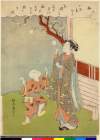 The Actors Arashi Otohachi I as Fukakusa no Shosho, Ichimura Uzaemon IX as Ariwara no Yukihira, and Nakamura Matsue I as Murasame in the play "Kisoe Uta Sakae Komachi," performed at the Ichimura Theater in the eleventh month, 1762