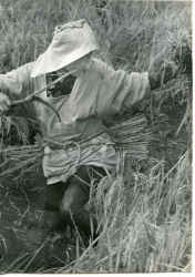 鎌を使って稲刈り