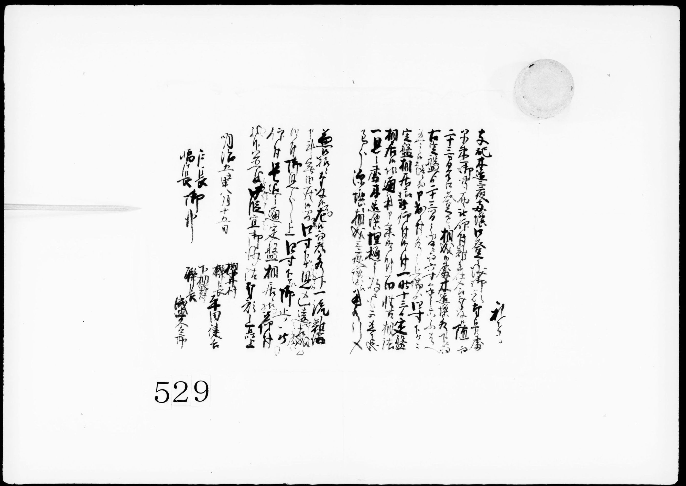 (木造・三夜堰修理につき願書の下書 )