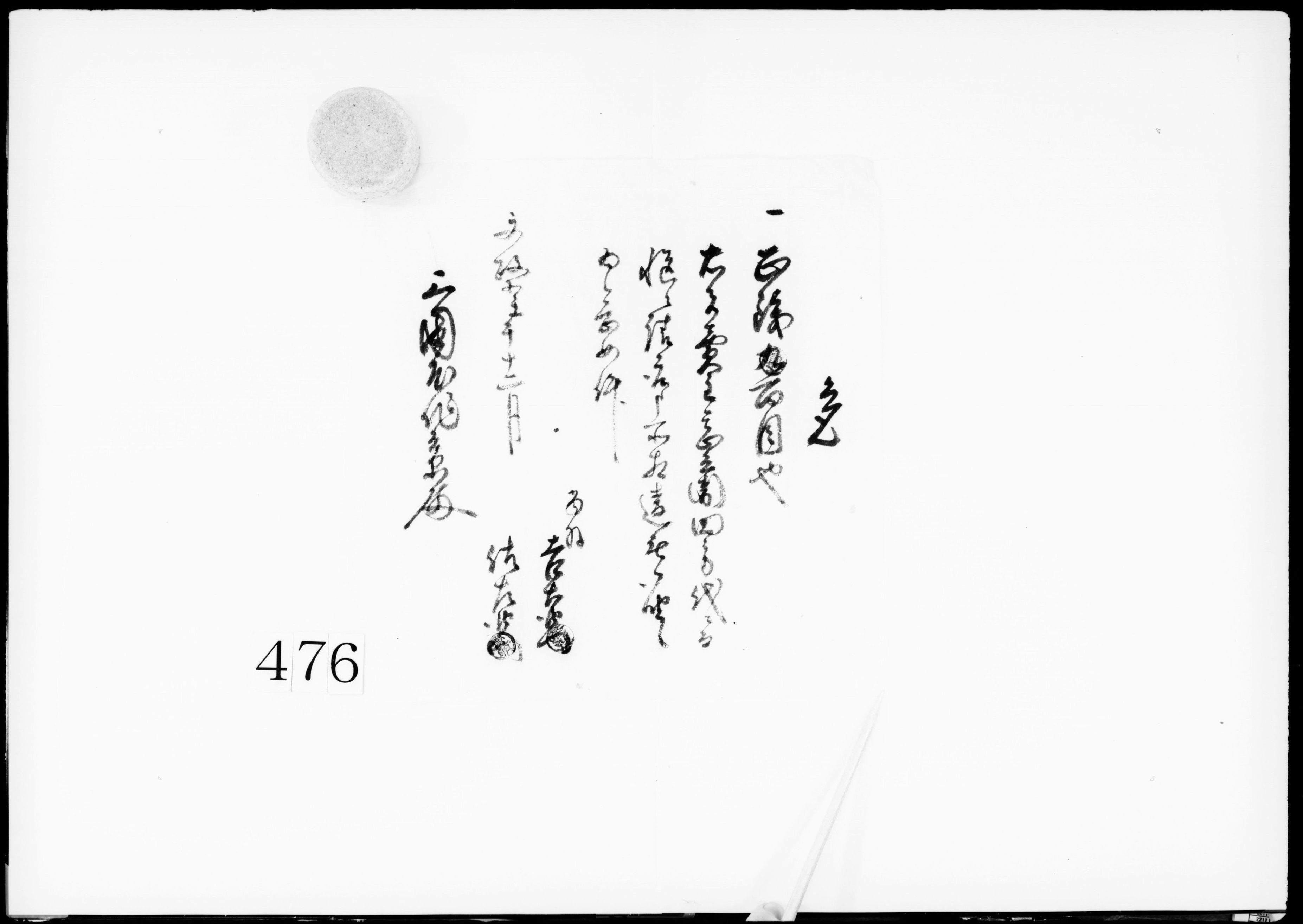 書状(金銭を渡すよう願)