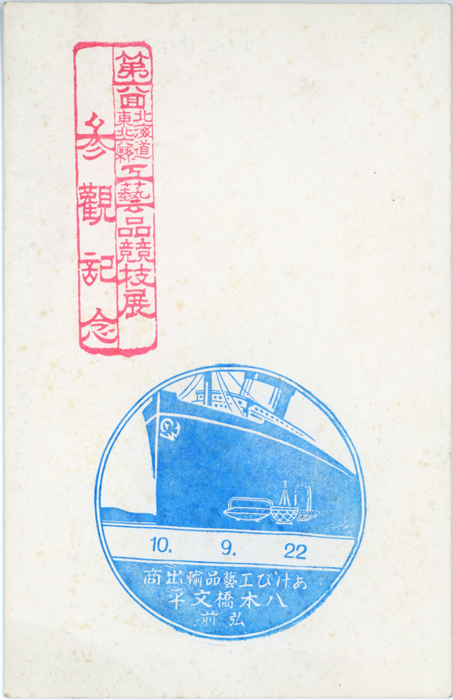 絵ハガキ(第六回北海道・東北六県工芸品競技展参観記念)