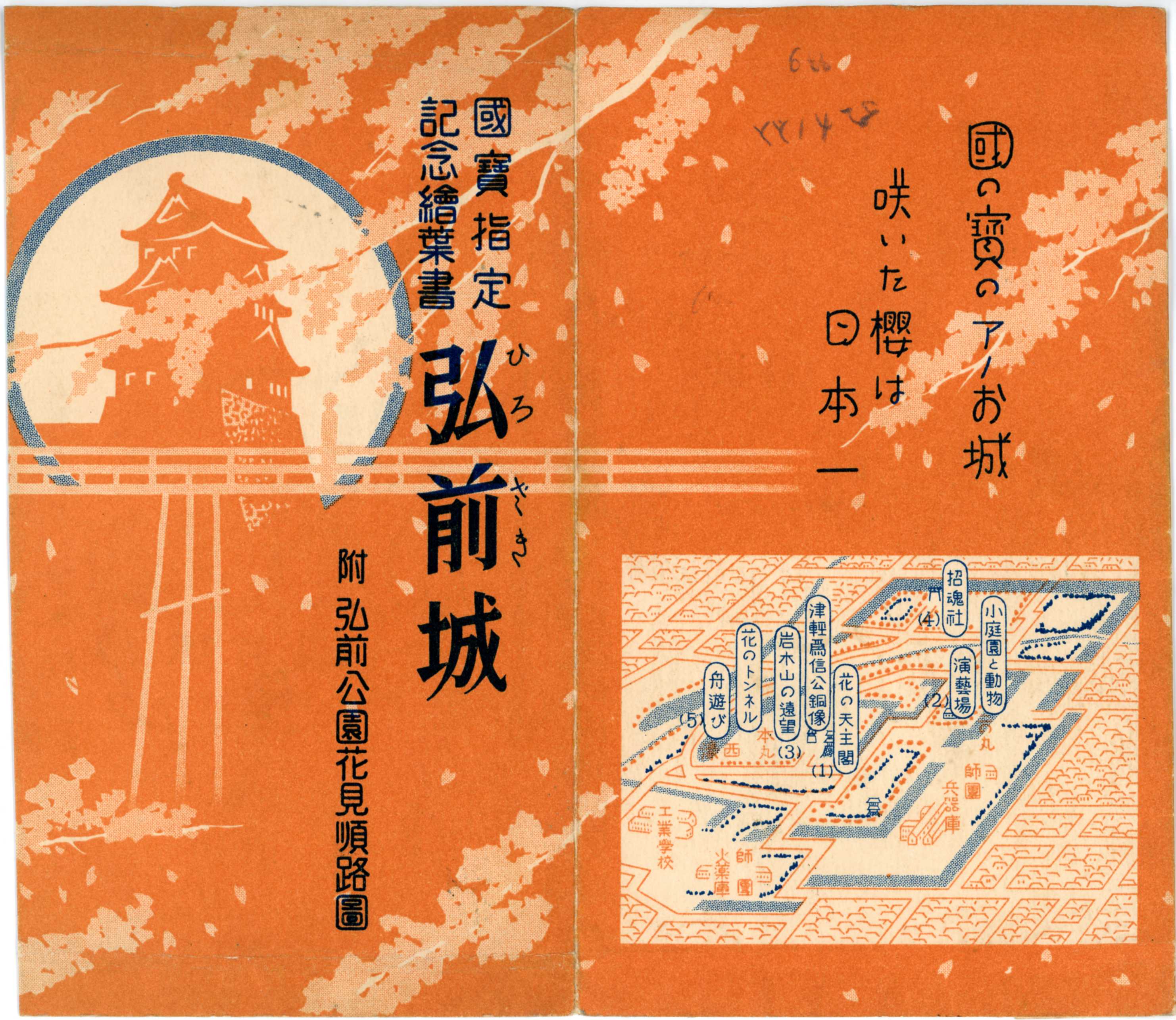 絵ハガキ(国宝指定記念絵葉書弘前城 附弘前公園花見順路図)