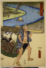 「五十三次名所図会」 「廿三」「藤枝 瀬戸川かち渡り」