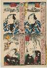 「(役者草木見立」 「発句賛)九字菱音右衛門」「イ菱の与吉」「井筒屋新助」「加名屋内いろは」