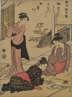 Discovering the Address of a Husband's Lover, from the series "A Collection of Humorous Poems (Haifu yanagidaru)"