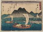 Maisaka: The Ferry at Imagiri (Maisaka, Imagiri funawatashi), from the series "Fifty-three Stations of the Tokaido (Tokaido gojusan tsugi)," also known as the Tokaido with Poem (Kyoka iri Tokaido)