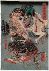 The actor Sawamura Tossho II as Hayano Kanpei and the onnagata actor Ichimura Kakitsu IV as Koshimoto Okaru