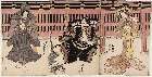 The Actors Ichikawa Raizo I as a peddler of tea whisks and Nakamura Matsue I as Yuya Gozen in the play "Daijobu Takadate Jikki," performed at the Nakamura Theater in the eleventh month, 1763