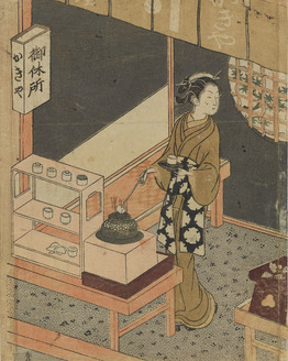 COURTESAN WAKOKU AS OTOMONO KURONOSHI AND COURTESAN KASUAGANO AS ARIWARA NO NARIHIRA, FROM A SERIES REPRESENTING THE SIX IMMORTAL POETS
