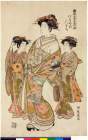 Courtesan Mitsuura of the Nakaomiya Walking with Her Kamuro Haruno and Miyako and a Male Attendant, from the series Twelve Floral Types of the Four Seasons in the Brothel (Seirō shiki junihanagata)