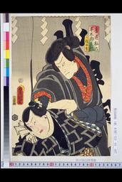 Bandō Hikosaburō V as Konoshita Tōkichi and Iwai Kumesaburō III as Okugata Ayanodai