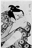 The Actors Bando Aizo as the courtesan Kewaizaka no Shosho and Ichikawa Raizo I as Soga no Goro in the play "Satsuki Matsu Unohana Soga," performed at the Morita Theater in the fourth month, 1766