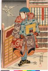 The Actors Nakamura Takesaburo I as Kewaizaka no Shosho and Ichikawa Danjuro II as Soga no Goro dressed as a komuso in the play "Bando Ichi Kotobuki Soga," performed at the Nakamura Theater in the first month, 1715