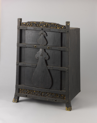 笈 木製鎌倉彫牡丹桃実文