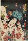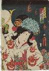 Sawamura Kunitaro as Ayame no Mae and Arashi Kitsuzaburō as Hyōgo no Kashira Yorimasa