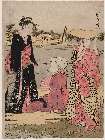 Woman adjusting her hairpin From the set: "Meisho Fukei Bijin Juni So" (Views of Famous Places: ...