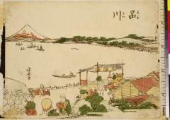 「五十三次名所圖會」「八」 「平塚」「馬入川舟渡し大山遠望」