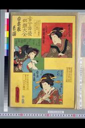 「古今俳優似顔大全」 「吾妻家系譜」「源蔵女房戸浪 三代目吾妻藤蔵」「九郎助娘小万 四代目吾妻藤蔵」「愛妾此村 五代目吾妻藤蔵 丸屋橘子」