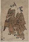 The Actors Ichimura Uzaemon VIII as Taira no Koremochi and Arashi Koroku I as Makomo no Mae in "Shusse Momijigari," performed at the Ichimura Theater in the eleventh month, 1747