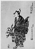Actor Nakamura Sukegorō 1ST WITH LACQUER BOX IN MOUTH STANDING BY FENCE